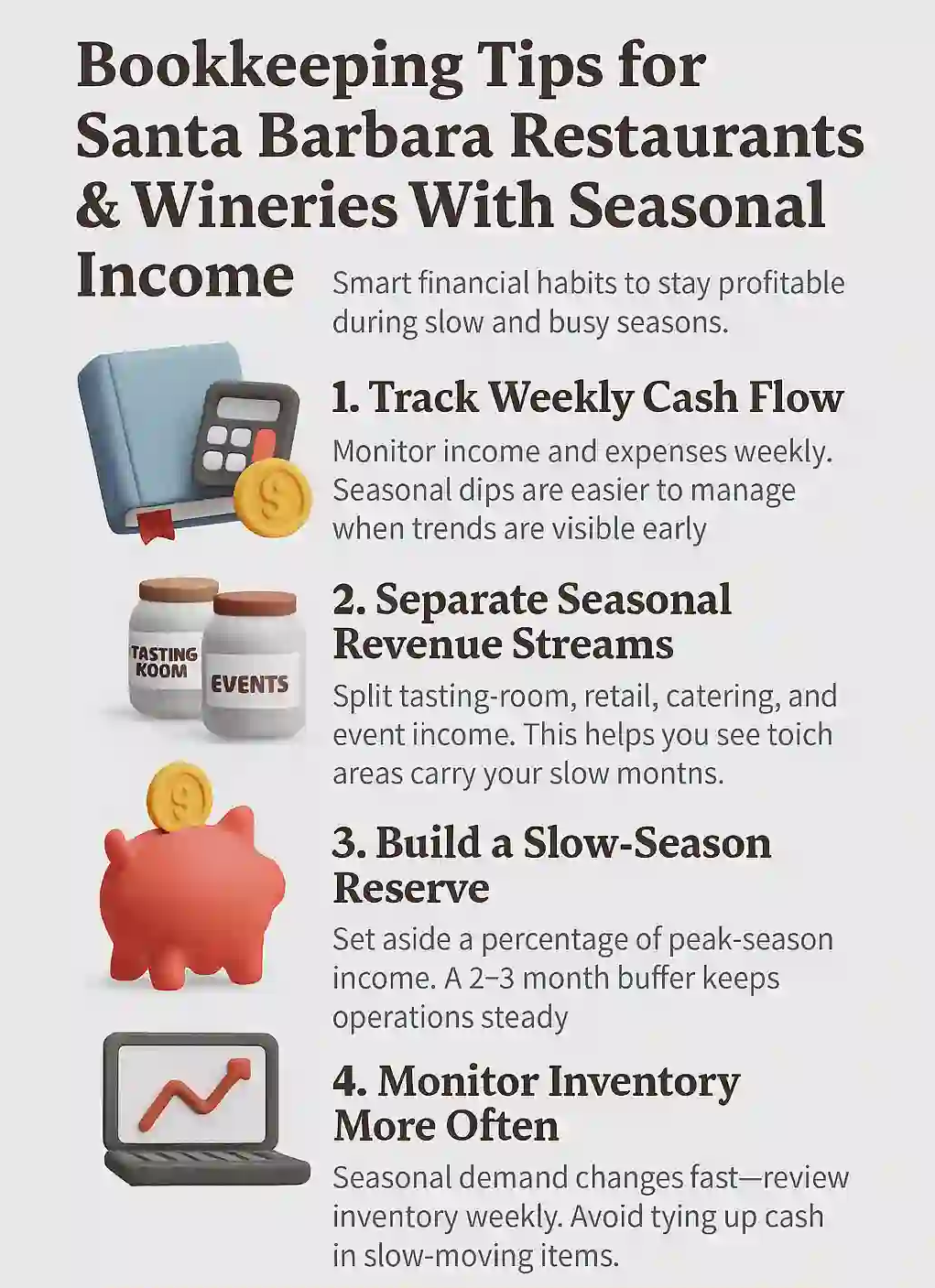Bookkeeping Tips for Santa Barbara Restaurants & Wineries with Seasonal Income