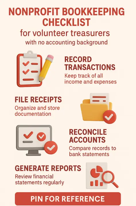 Managing nonprofit finances as a volunteer treasurer can feel intimidating, especially without formal accounting training. But with a clear framework, you can keep your organization compliant, organized, and fully prepared for board reviews or audits. The checklist below highlights the essential bookkeeping responsibilities every nonprofit must address—focused on simplicity, transparency, and practical execution, helping you avoid the kind of Accounting Mistake that can derail reporting or compliance.